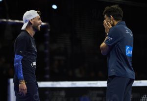 Y no fueron solo los colores los que iluminaron esta noche, sino también la música, los aplausos y las sonrisas de los jugadores y jugadoras, llenas de ilusión y sueños de victoria. Tras la introducción, en la que se recordó que esta decimocuarta edición del Europeo — la primera bajo el nuevo formato de la FIP Euro Padel Cup — es “la más esperada”, se mencionó el legado de Cagliari, sede de la última edición, y de Madrid, escenario de la Fase 1 y la Fase 2 del torneo. Luego, los equipos desfilaron uno a uno, con sus banderas, sus fotos y los aplausos del público.